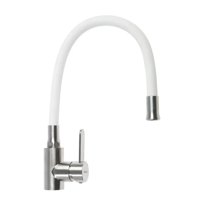 Смеситель для кухни Accoona A48104G, однорычажный, с гайкой, нерж.сталь, белый/сатин