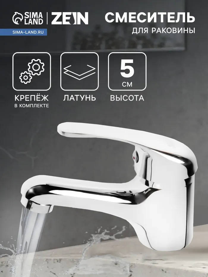 Смеситель для раковины ZEIN ZC-013, картридж керамика 35 мм, латунь, хром