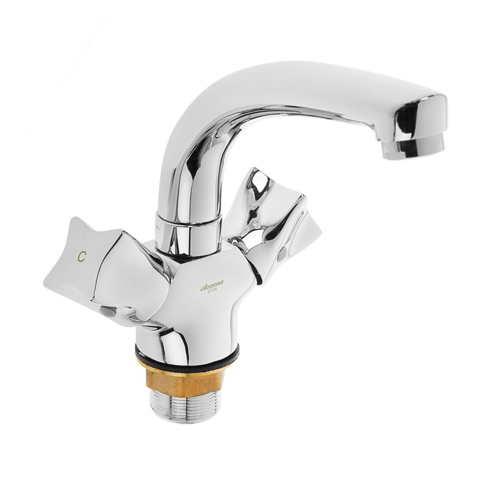 Cмеситель для раковины Accoona A89473, двухвентильный, с гайкой, силумин, хром
