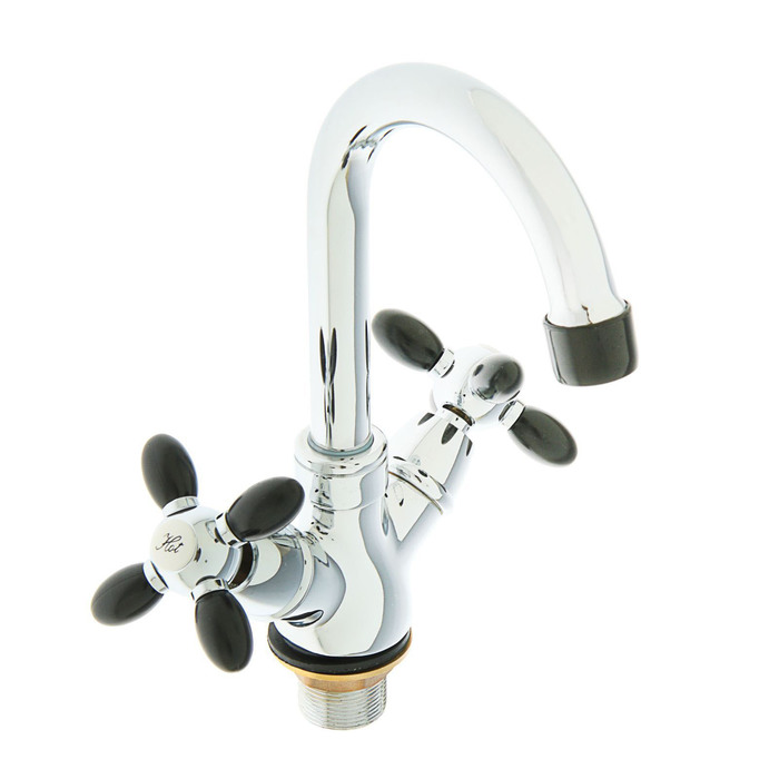 Смеситель для раковины Accoona A9482F, двухрычажный, с гайкой, черный/хром