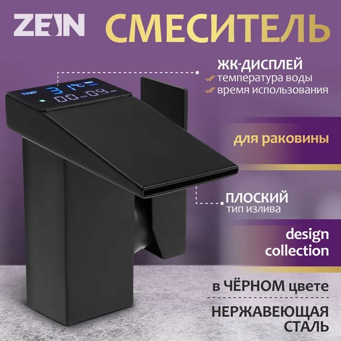 Смеситель для раковины ZEIN Z3810, дизайнерский, однорычажный, плоский излив, черный