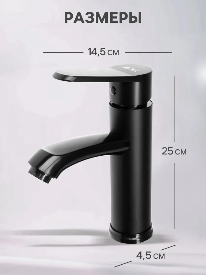 Смеситель для раковины ZEIN Z2393, картридж 40 мм, короткий излив, нержа сталь, черный