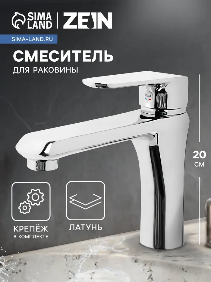 Смеситель для раковины ZEIN Z3777, однорычажный, высота излива 25 см, хром