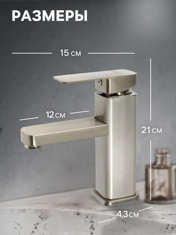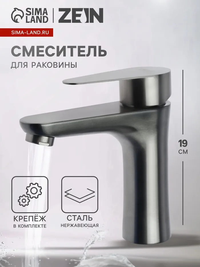 Смеситель для раковины ZEIN Z4070, картридж 35 мм, длина излива 12 см, нерж. сталь, сатин