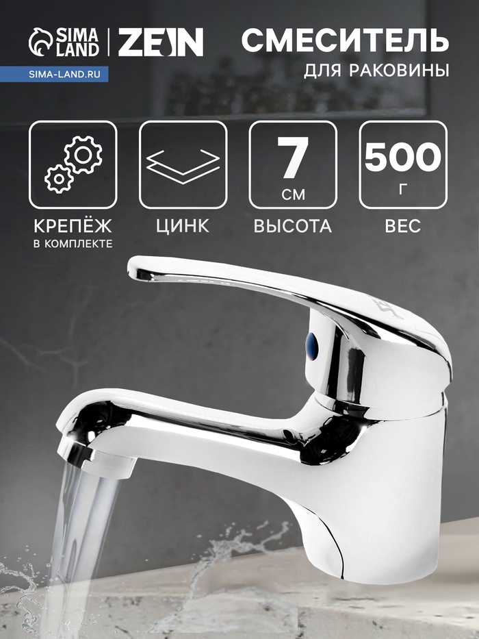 Смеситель для раковины ZEIN Z3654, однорычажный, высота излива 8 см, ABS-пластик, хром
