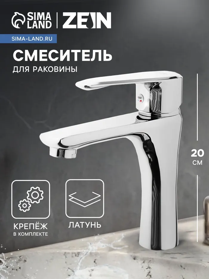 Смеситель для раковины ZEIN ZC2046, картридж керамика 35 мм, высокий, хром
