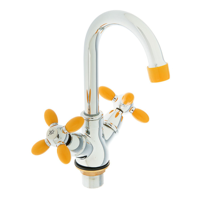 Смеситель для раковины Accoona A9482H, двухрычажный, с гайкой, желтый/хром