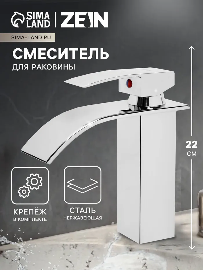 Смеситель для раковины ZEIN Z3773, однорычажный, высота излива 22.5 см, хром