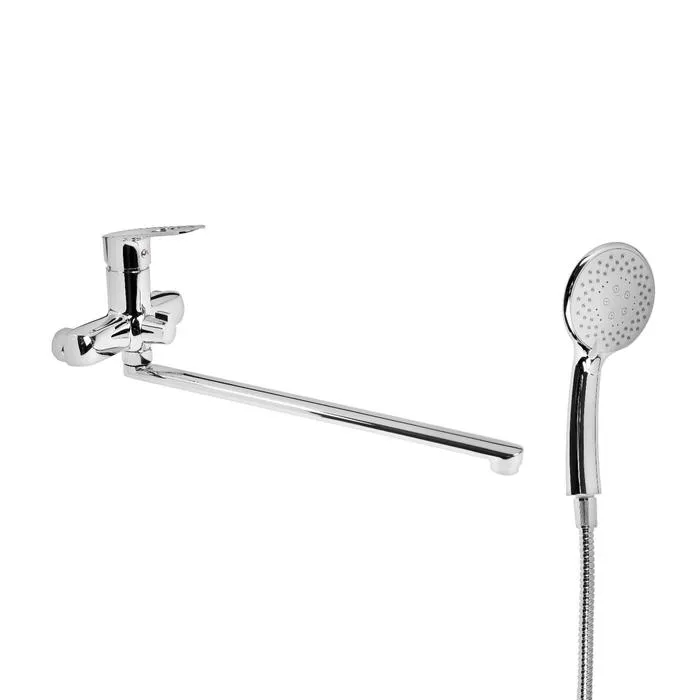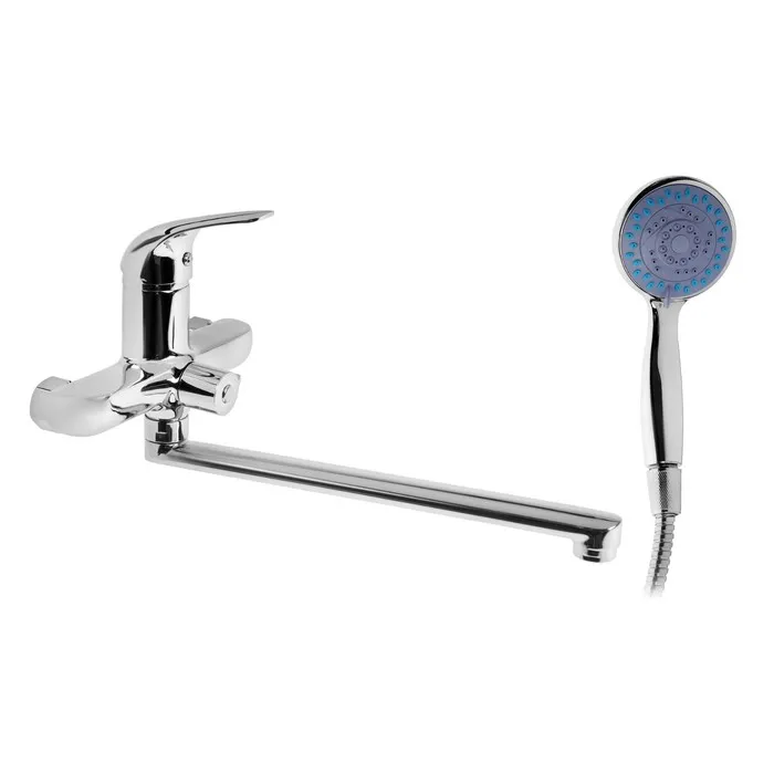 Смеситель для ванны ZEIN Z3848, однорычажный, излив 30 см, душевой набор, лейка 5 реж, хром