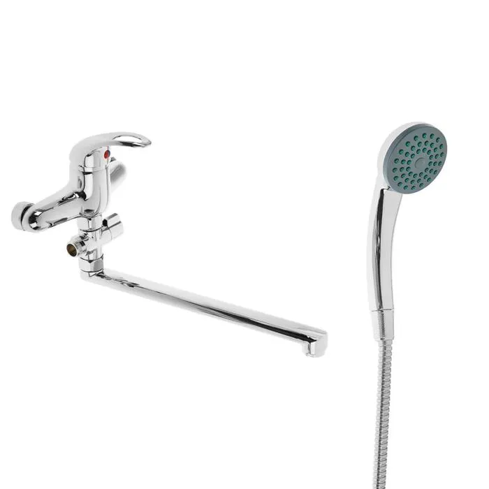 Cмеситель для ванны Accoona A7060, однорычажный, излив 300 мм, с душевым набором, хром