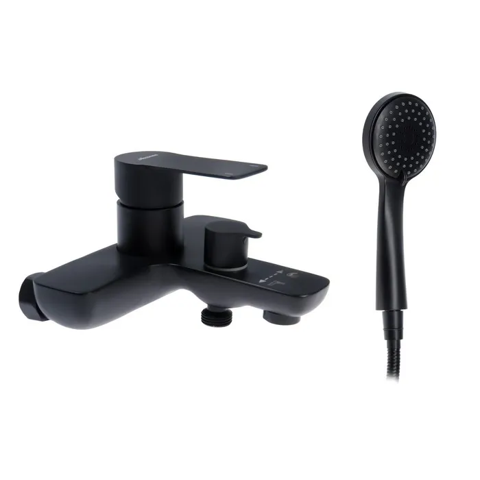 Смеситель для ванны Accoona A63207F, однорычажный, излив 158 мм, душевой набор, черный