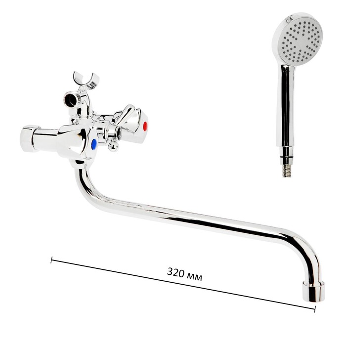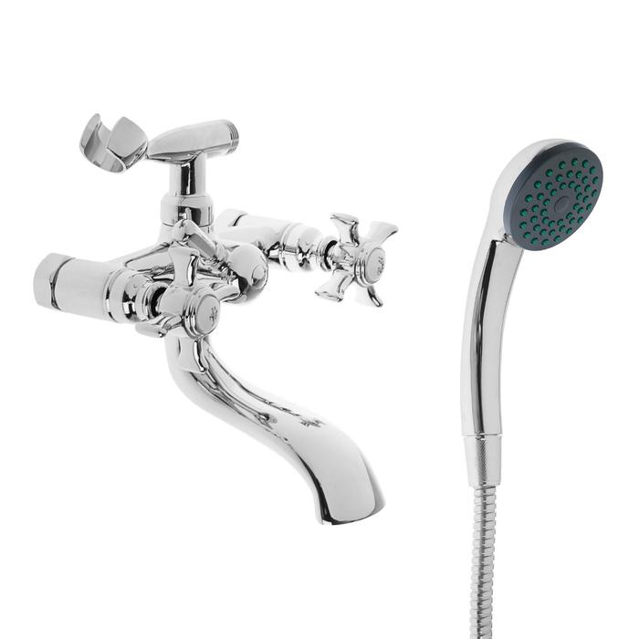 Смеситель для ванны "ЦС-СМ СМ503820", двухвентильный, настенный, с душевым набором, хром