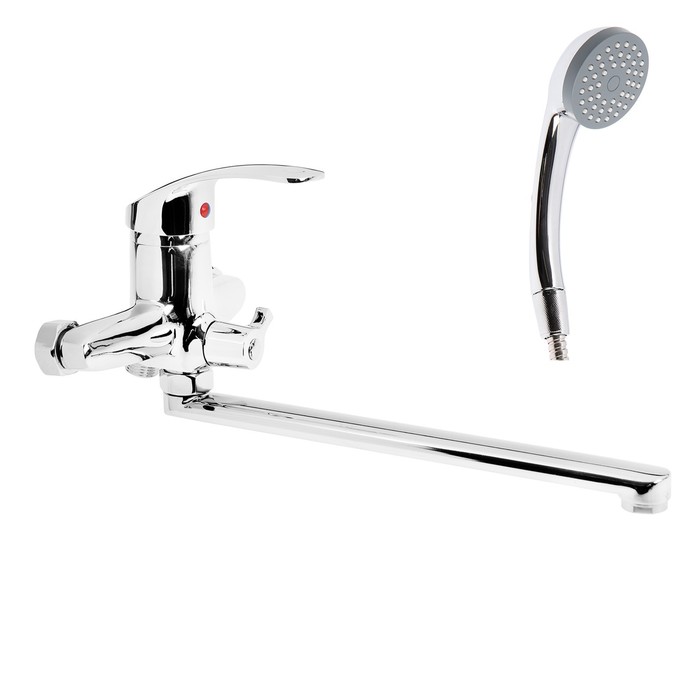 Смеситель для ванны Accoona A7113, однорычажный, излив 33 см, с душевым набором, хром