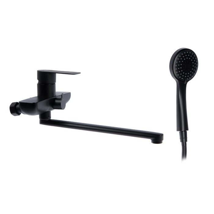 Смеситель для ванны Accoona A71207F, однорычажный, излив 300 мм, душевой набор, черный