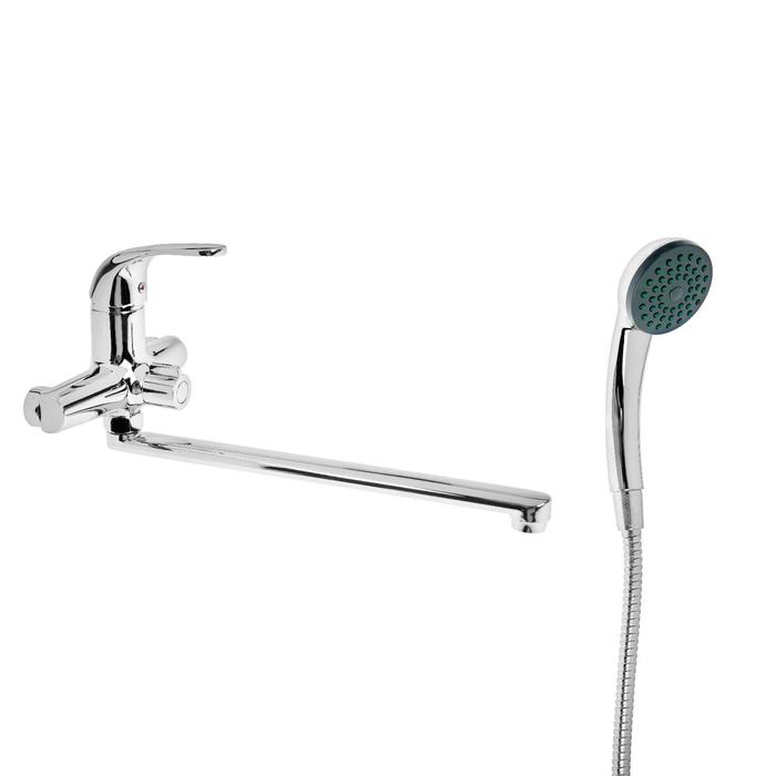 Смеситель для ванны Accoona A7113, однорычажный, излив 33 см, с душевым набором, хром