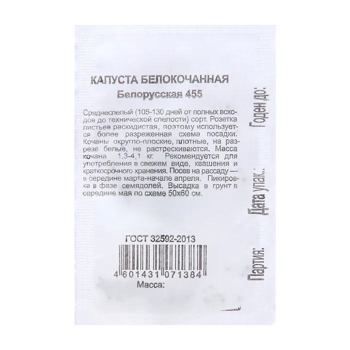 Семена Капуста белокоч. "Белорусская 455", 0,1 г б/п