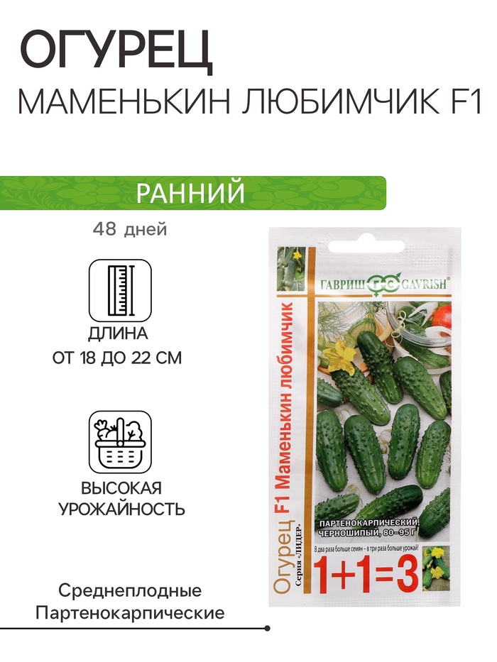 Семена Огурец «Маменькин любимчик F1», серия «1+1», 20 шт., «Гавриш»