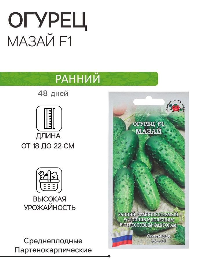 Семена Огурец «Мазай», F1, 0.15 г, ранний, «Золотая сотка Алтая»