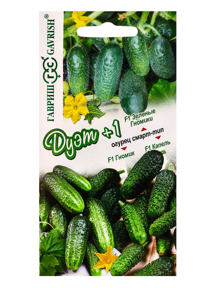 Семена Огурец Зеленые гномики F1 10 шт.+Гномик F1 10 шт.+Капель F1 10 шт. серия Дуэт+1