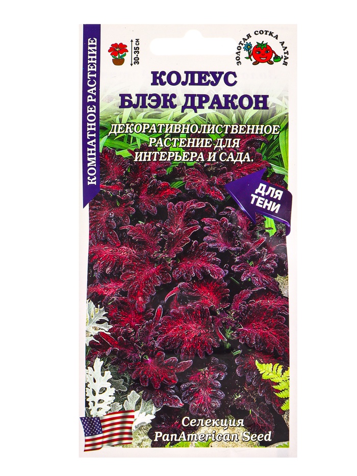 Семена комнатных цветов Колеус «Блэк Дракон», 10 шт., бордовый, «Золотая Сотка Алтая» селекция PanAmerican Seed