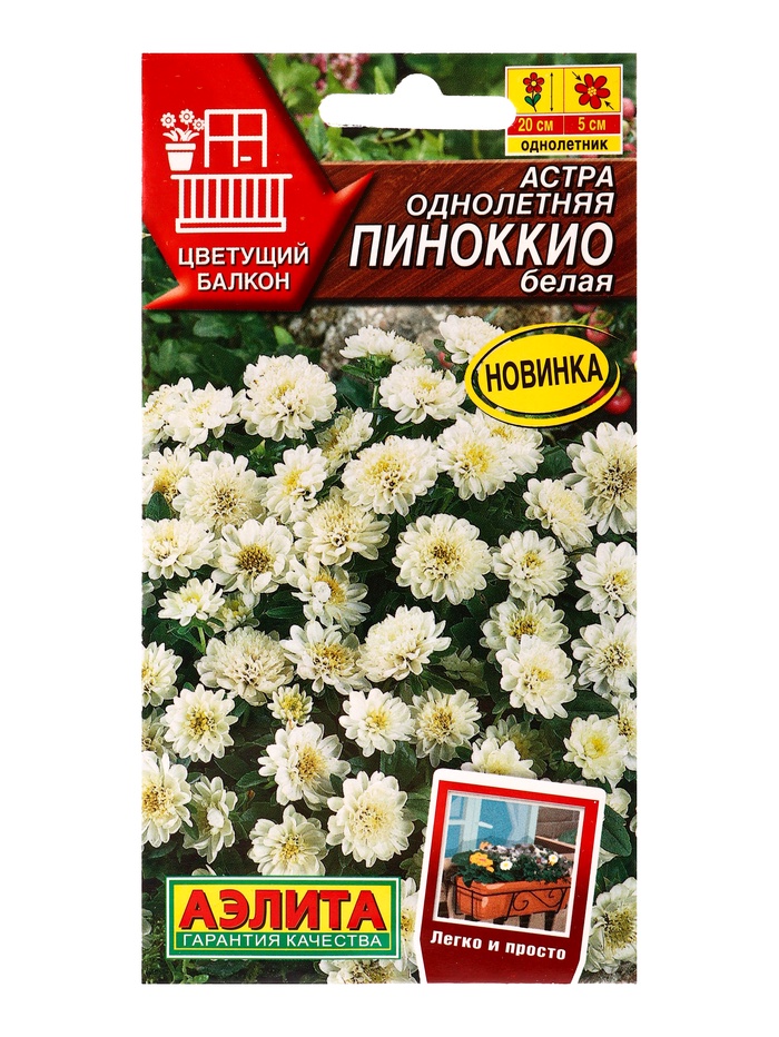 Семена цветов Астра Пиноккио белая Цветущий балкон, Ц/П,0,05 г