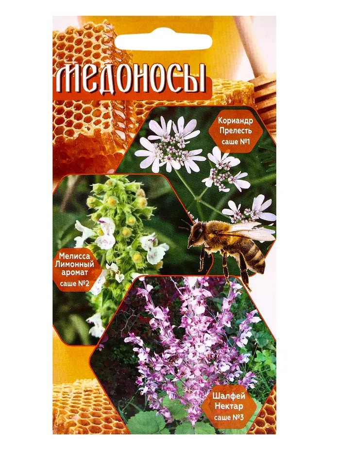 Семена Набор пряных трав-медоносов, привлекающих опылителей: Кориандр, Мелисса, Шалфей, 0.3 г