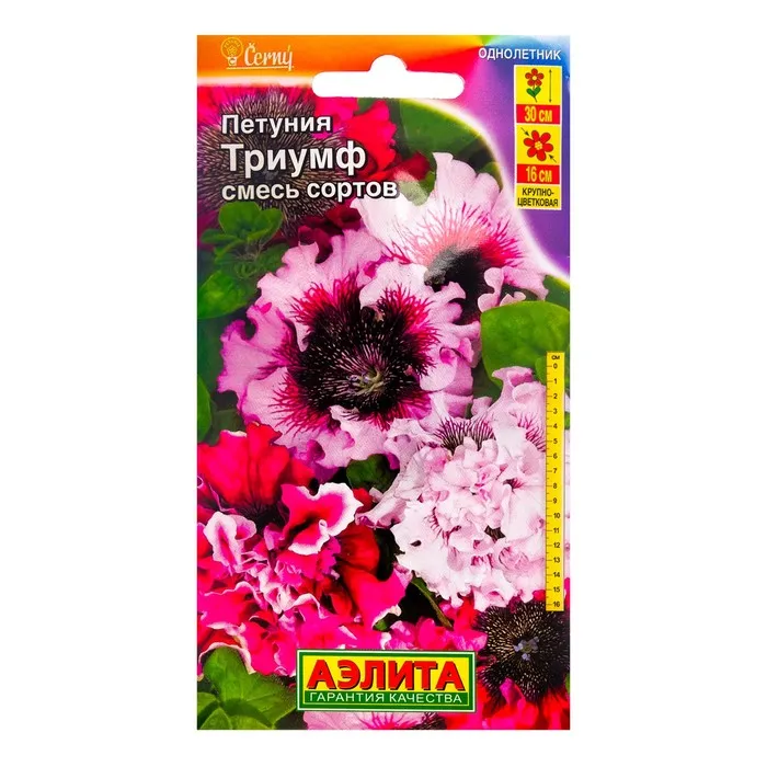 Семена Цветов Петуния "Триумф" крупноцветковая, смесь окрасок,, 10 шт