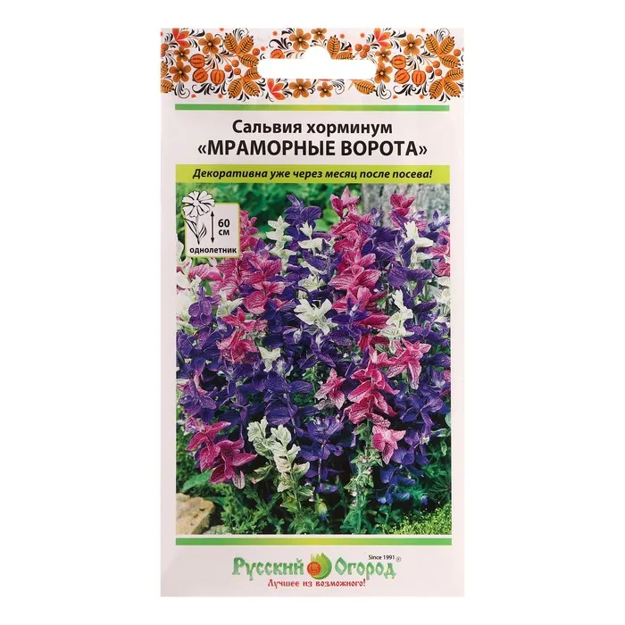 Семена цветов Сальвия хорминум "Мраморные ворота", смесь, 30 шт