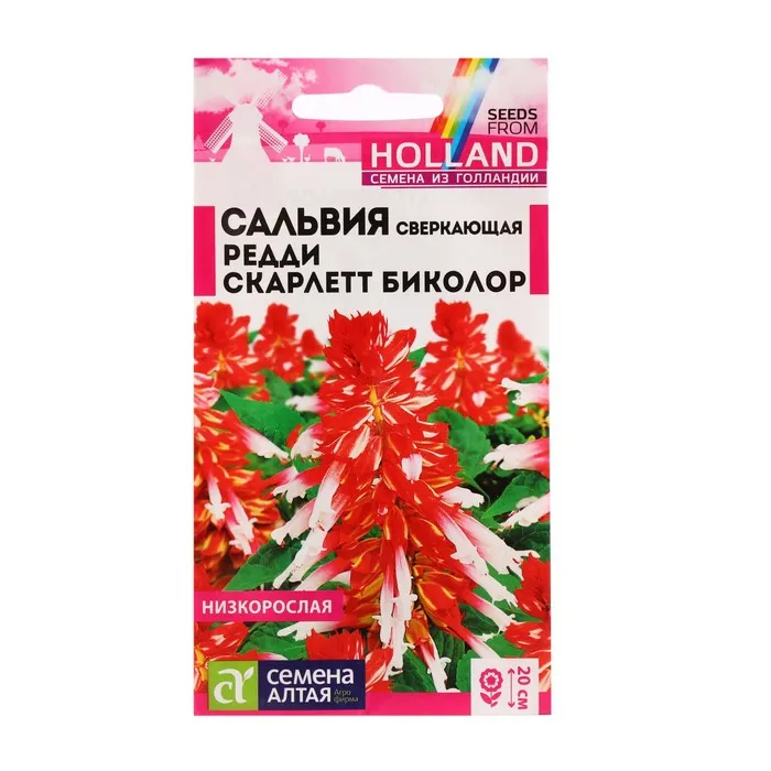 Семена цветов Сальвия "Редди", скарлет, биколор сверкающая, Сем. Алт, ц/п, 5 шт