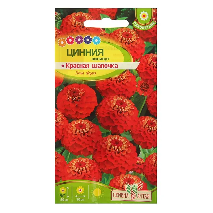 Семена цветов Цинния лилипут "Красная Шапочка", ц/п, О, 0,3 г.