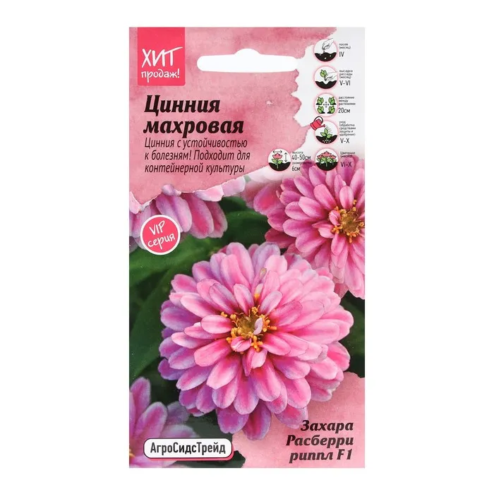 Семена Цветов Цинния "Расберри Риппл", 5 шт