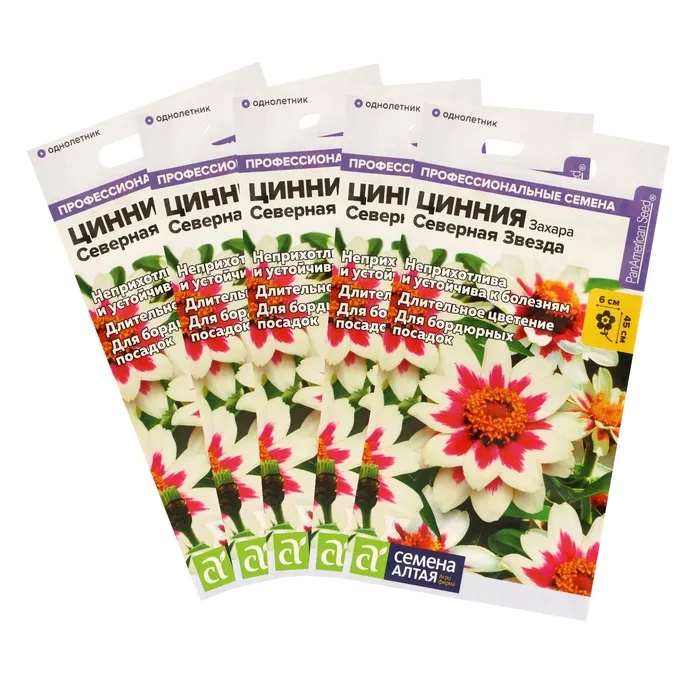 Семена цветов Цинния Захара "Северная звезда",набор 5 шт