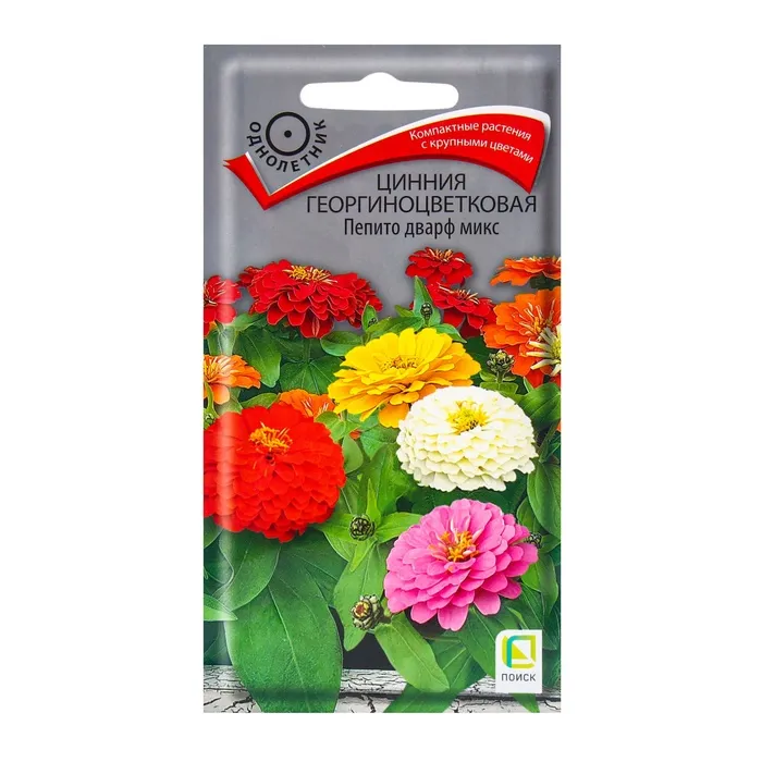 Семена цветов Цинния георгиноцветковая Пепито дварф микс, 0,4гр