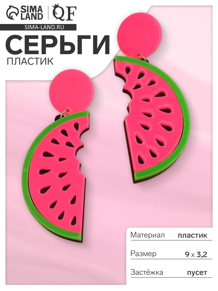 Серьги пластик «Вкусняшка» арбузики, цвет чёрно-розовый