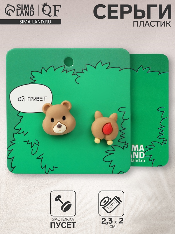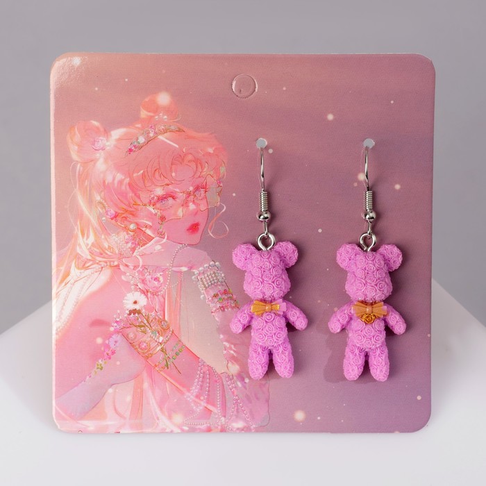 Серьги ассорти «Радость» медведи, цвет розовый в серебре