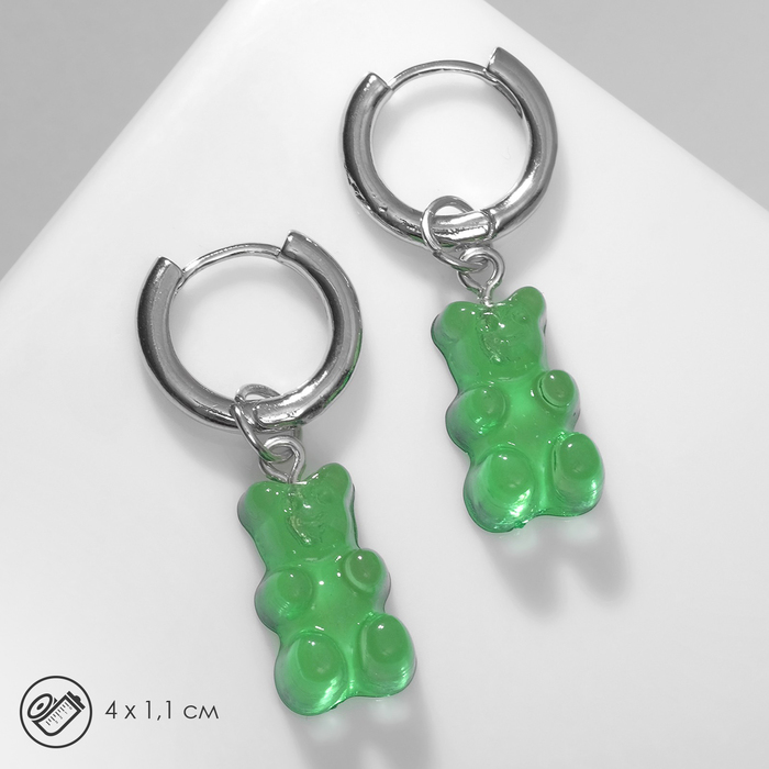 Серьги ассорти «Мармеладные мишки» трансформер, цвет салатовый в серебре