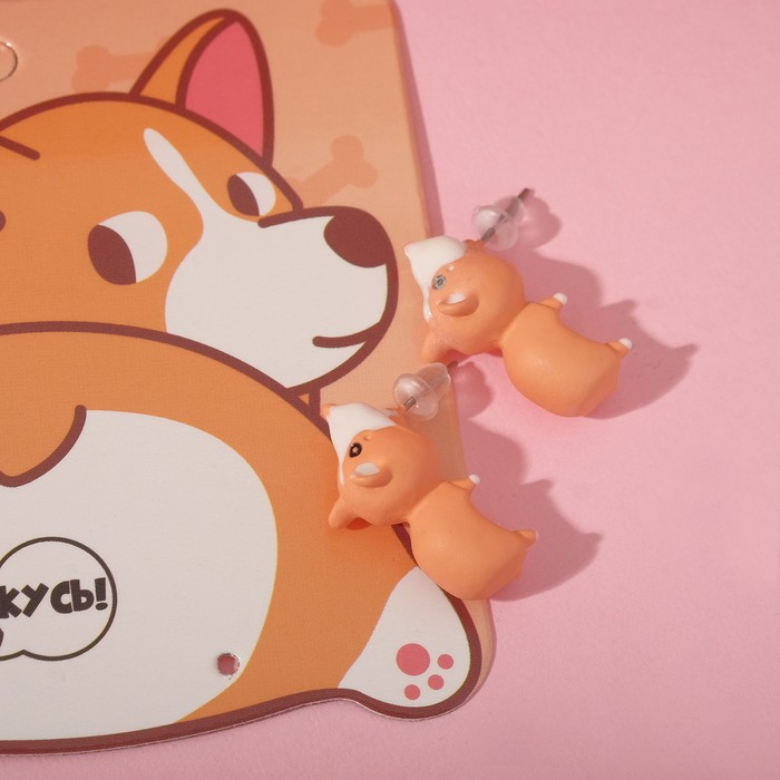Серьги из полимерной глины «Корги», цвет оранжевый