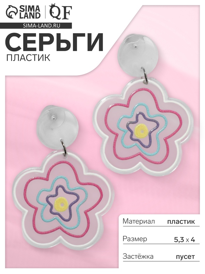 Серьги пластик «Пятилистник» цветы прозрачные, цветные