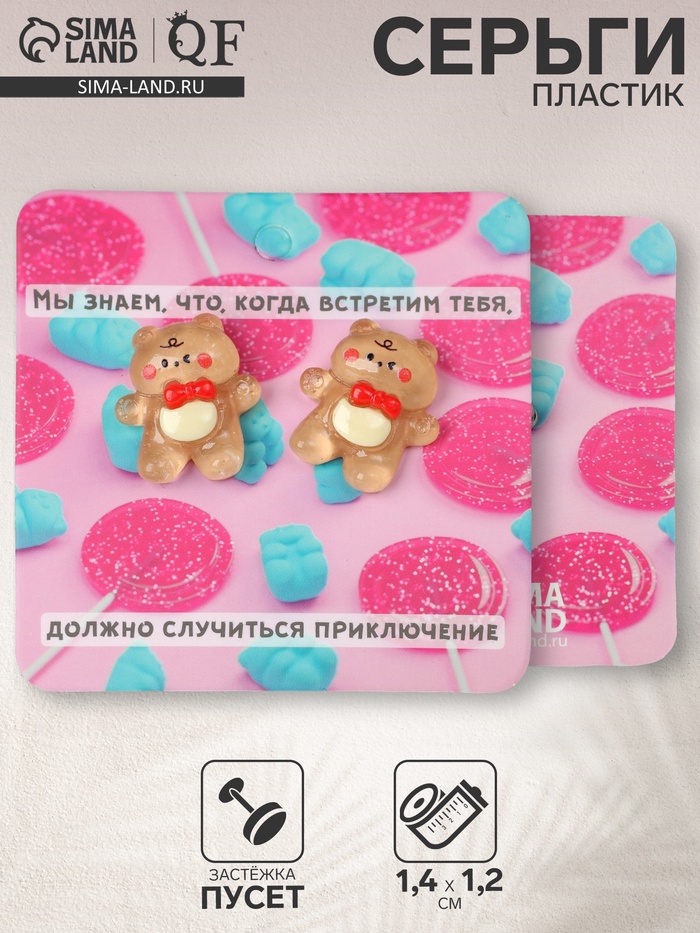 Серьги ассорти «Радость» космонавты медведи, цвет коричнево-белый в серебре