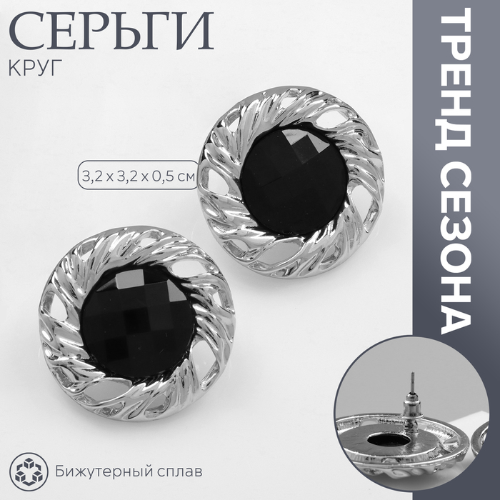 Серьги ассорти «Круг» сфера, цвет чёрный в серебре