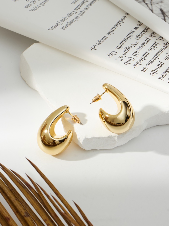 Серьги пластик «Капля» изогнутая, цвет золото