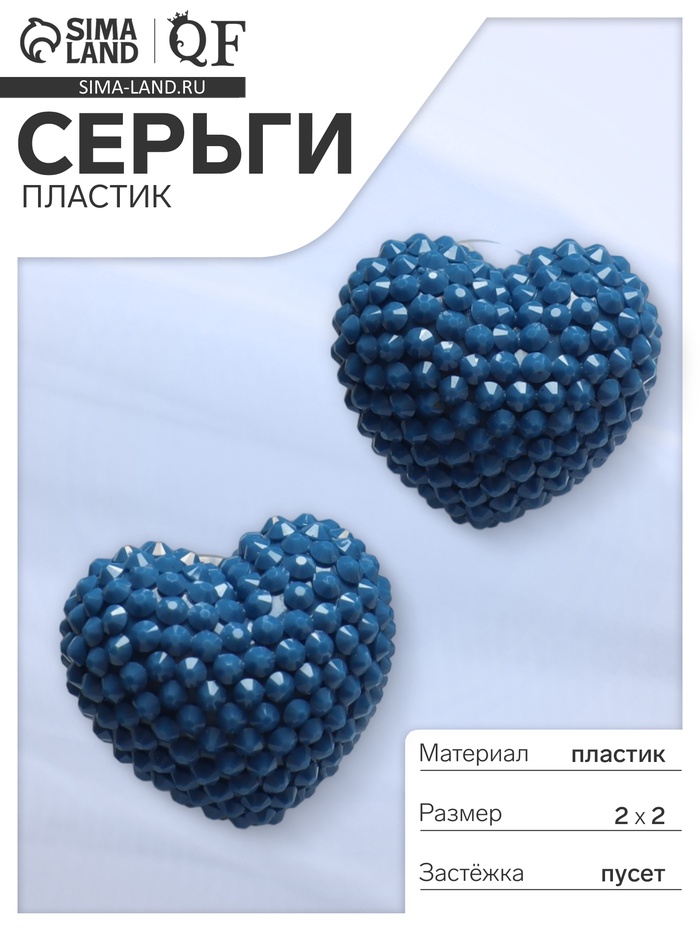 Серьги пластик «Карамель» сердце, цвет синий