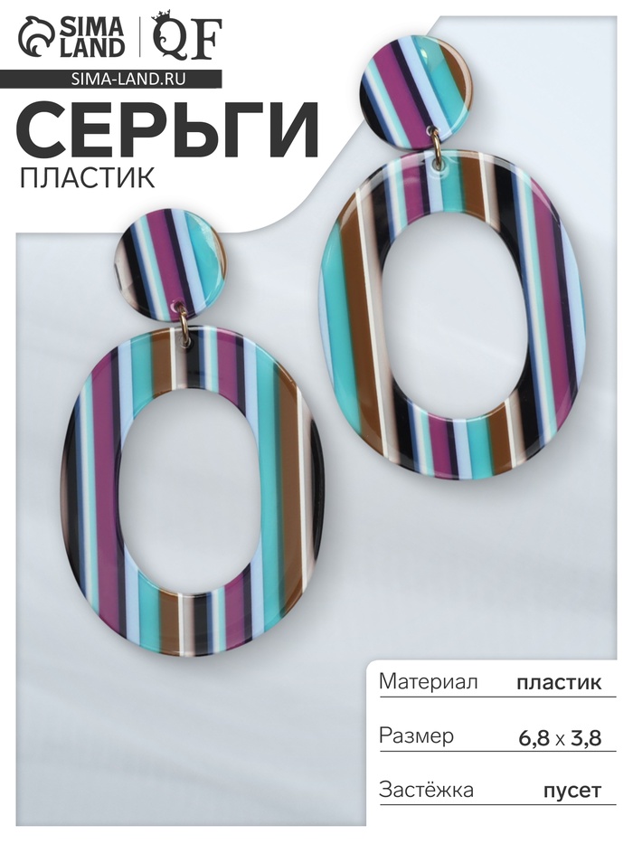 Серьги пластик «Глянец» цветные с сиренево-голубыми вставками