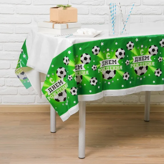 Скатерть одноразовая «С днём рождения», футболист, 180х137см