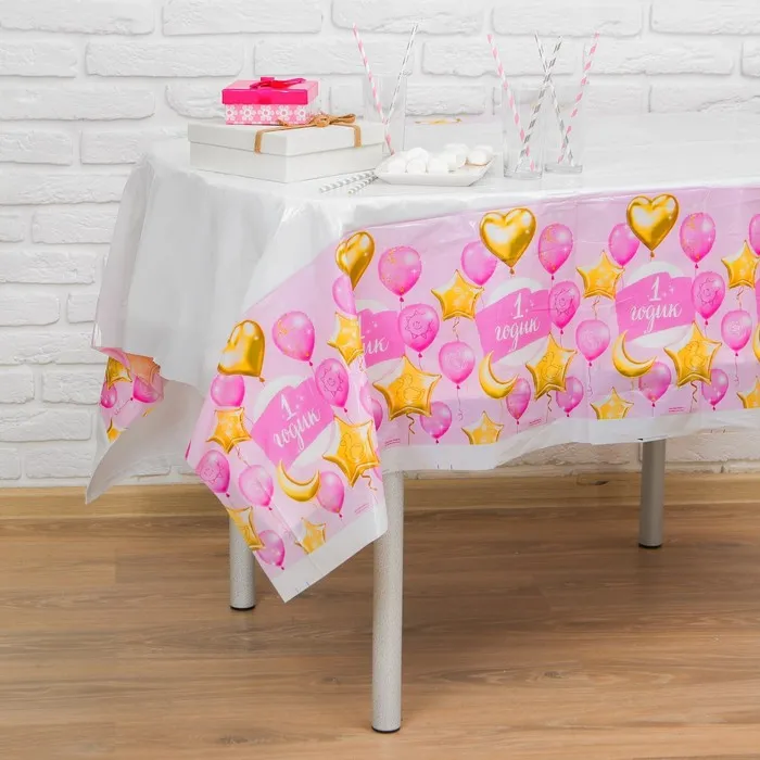 Скатерть одноразовая «1 годик», малышка, 180х137 см