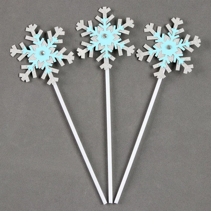 Топпер новогодний для торта «Снежинки», 3 шт., голубой
