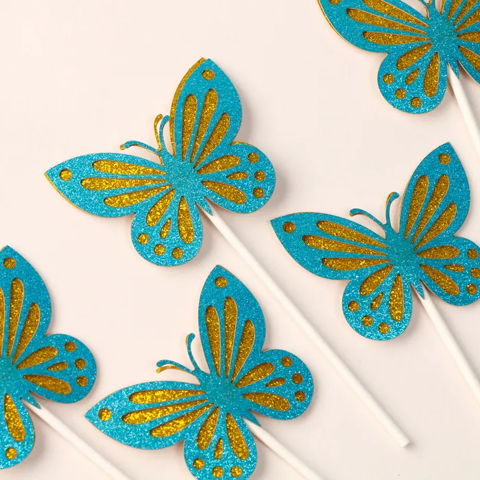 Топпер для торта «Бабочки», набор 5 шт., синий