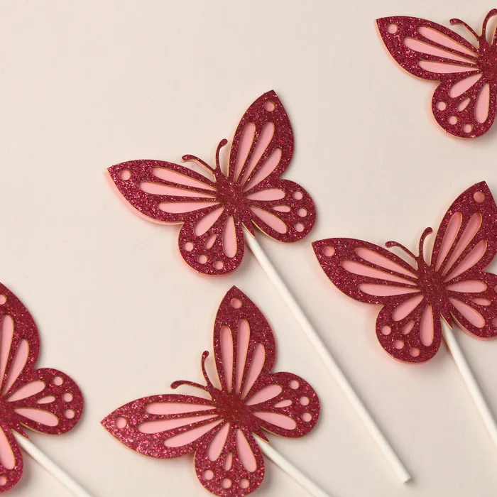 Топпер для торта «Блестящие бабочки», набор 5 шт., розовый