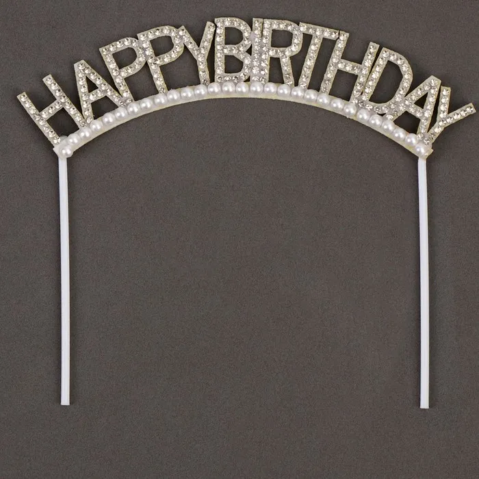 Топпер для торта «С днём рождения», со стразами и бусинами