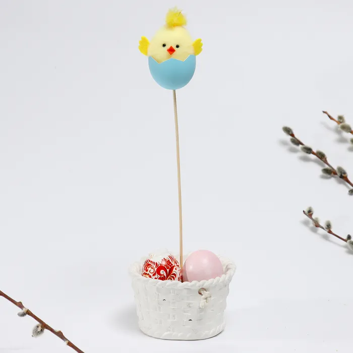 Пасхальный декор на палочке «Цыплёнок в яйце» 5×6.5×32.5 см